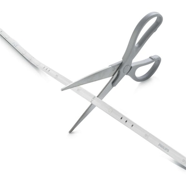 Hvis LightStrips ikke passer nøyaktig til ønsket bruksområde, kan du enkelt klippe dem til riktig størrelse. Markeringer på produktet viser deg hvor du skal klippe.