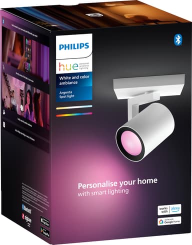 Lys opp rommet ditt med Philips Hue Argenta enkelt LED spotlys 4,2 W GU10. Juster spotlighten til å lyse hvitt lys eller velge mellom 16 millioner farger der du trenger det.Les mer om produktet