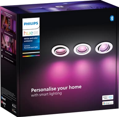 Gi bakgrunnsbelysningen i hjemmet ditt et løft med Philips Hue Centura innfelt rundt spotlys. Denne anvendelige lyskilden gir deg hvitt og fargerikt lys, en dimme-funksjon og enkel kontroll via Bluetooth, alt klart fra dine fingertupper.Les mer om produktet