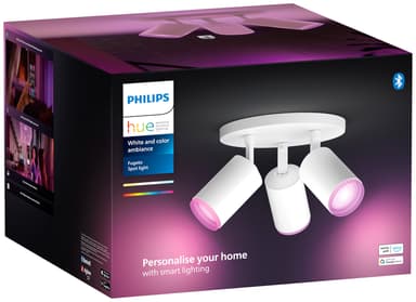 Lys opp ethvert rom med Philips Hue Fugato trippelt spotlys 3x4,2W GU10. Med Zigbee-tilkobling, en GU10-sokkel, og 16 millioner farger, er det lett å skape ideell belysning for ethvert humør eller enhver anledning.Les mer om produktet