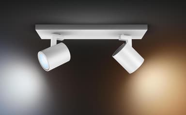 Lys opp rommet ditt med Philips Hue Runner LED spotlys 2x4,2W GU10. Juster spotlyset slik at det lyser varmt eller kjølig hvitt lys der du trenger det. Styr den umiddelbart med Hue Dimmer-bryteren, og legg til en Hue Bridge for ekstra funksjoner.Les mer om produktet