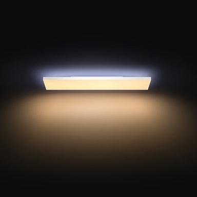 Philips Hue Datura rektangulært takpanel er elegant og rammeløst, og har to individuelt kontrollerbare lyskilder for funksjonell og ambient belysning. Hver kilde tilbyr tilpassbar hvitt og farget lys. Den er kompatibel med Philips Hue-appen.Les mer om produktet