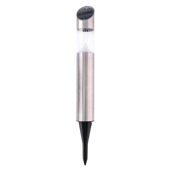 Spesifikasjoner: - Størrelse: ca. Ø6 x 53,5 cm - Batteri: Innebygd oppladbart 1x AAA-batteri 600 mAh Ni-Mh 1,2V - Driftstid: 6-8 timer - Lyskilde: LED - Beskyttelse: IP44 - Farge: Sølv - Materialer: Rustfritt stål og glass - Nummer i pakken: 3