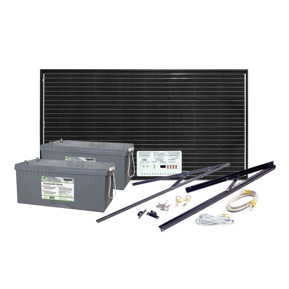 Solcelleanlegg på 12 volt med god ladekapasitet på 185 watt og god batterikapasitet med to store AGM batterier. Dette er en fin pakke til deg som benytter hytta hele året, og trenger batterikapasitet til litt lengre forbruksperioder. Solcelleanlegget inneholder solcellepanel med justerbar brakett, to 260 At AGM batterier og riktig dimensjonert solcelleregulator til anlegget. Monteringsmateriell må kjøpes ved siden av. I denne pakken medfølger et 185 watt Max Power solcellepanel. Max Power er markedets mest effektive solcellepaneler, og leveres med 30 års effektgaranti. Vi anbefaler at du monterer solcellepanelet på sydvendt vegg. Du får også med to 260 At Sunwind AGM batterier som både har god lademottagelighet og er fullstendig vedlikeholdsfrie. I tillegg får du en solcelleregulator Sunwind 20 AVAB som er egnet sammen med dette solcellepanelet og batteriet.