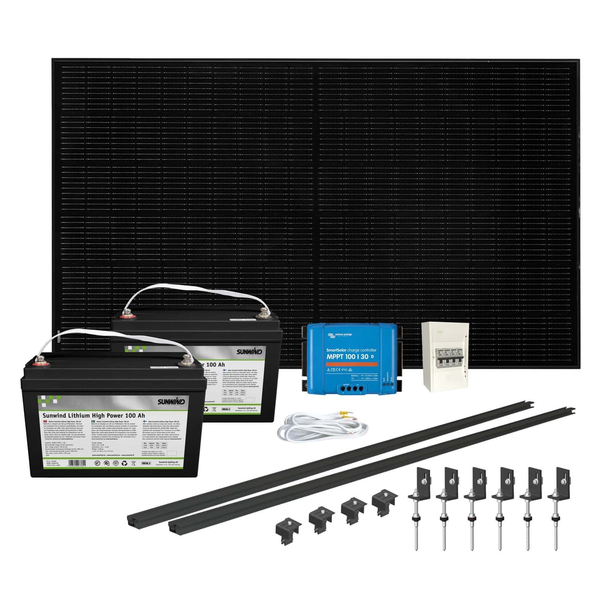 Solcelleanlegg 12V, 430 watt, 2 x Litium 100At