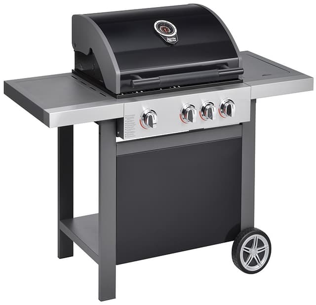 Gassbrennere: Grillen har tre gassbrennere og en sidebrenner med totaleffekt på 13.300 watt. Bryterne har integrert tenning for mer praktisk bruk.