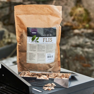 Røykflis av eik som egner seg for røyking av fisk, kylling og storfe. Eik gir en kraftig smakstilsetning på kjøttet. Til bruk i røykboks på grill eller i røykeovn.