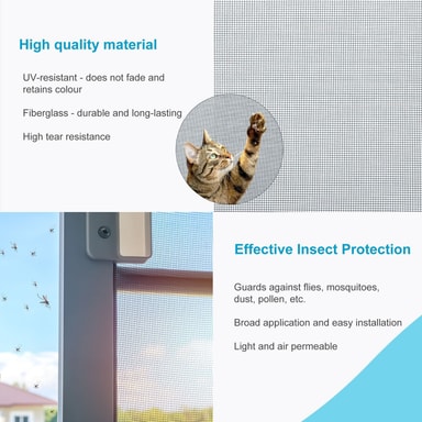 Slitesterk fluenett i glassfiber i meterstørrelser. Beskytter mot insekter. UV-motstand forhindrer falming. Varer til gårdenLes mer om produktet