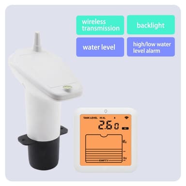 Allsidig og robust konstruksjon: Ultralyd nivåmåleren er laget av høykvalitets ABS-materiale, som sikrer lang levetid og pålitelig ytelse. Den er designet for å tåle ulike miljøforhold, og har en IP65-klassifisering som beskytter mot vannsprut fra alle retninger. Dette gjør den ideell for både innendørs og utendørs bruk. Den trådløse rekkevidden på opptil 100 meter i åpent terreng gir fleksibilitet i plasseringen av senderen og mottakeren. Med justerbare alarmer og en klar LCD-skjerm, kan du enkelt overvåke og kontrollere væskenivået i tanken din. Den er perfekt for en rekke applikasjoner, fra vanntanker og svømmebassenger til industrielle prosesser og landbruk. Med denne nivåmåleren får du en pålitelig og allsidig løsning som vil vare i mange år.