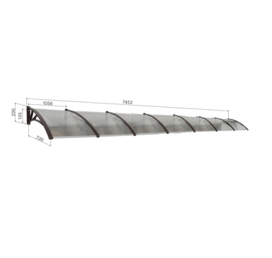 Baldakin over dør, brun, med transparent polykarbonat, bredde 7452 mm, Conos