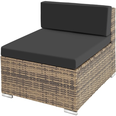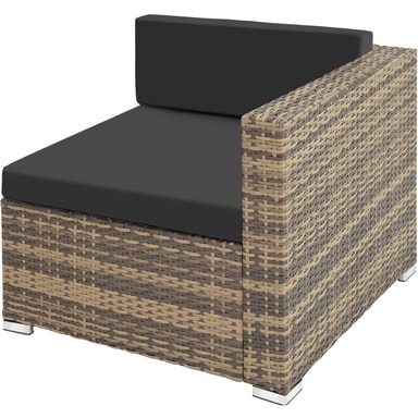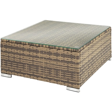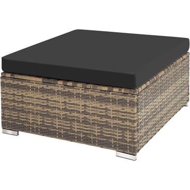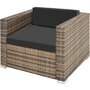 Dette hagemøbelsettet i rotting fra tectake er laget av slitesterk polyrattan og består av bord, sofa og lenestol. Sofaen med utemøbelsett kan også deles i 3 individuelle stoler. Bordets overflate er laget av glass, noe som gir det et elegant utseende og gjør det enkelt å rengjøre. Sofaen, stolen og krakken har komfortable sitteputer laget av polyester som er perfekt fargekoordinert til rottingsettet. Dessuten har putetrekkene en glidelås på baksiden som gjør det enkelt å rengjøre. For å beskytte polstringen mot fuktighet er overflaten impregnert slik at smuss og vann lett faller av. Gjennom de ulike enkeltelementene kan settet ordnes etter dine ønsker og behov. Med dette hagemøbelsettet i rotting av høy kvalitet fra tectake kan hjemmehagen eller terrassen din forvandles til din egen utestue.