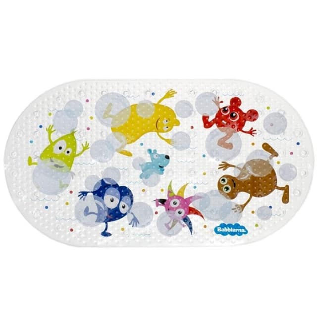 Nu följer Babblarna med dig även till badrummet. Denna mjuka och färgrika badmatta med härligt babblarmotiv svarar för badglädjen. För säkerheten svarar den halksäkra ytan och de många sugkopparna.
