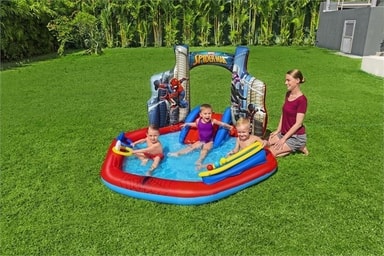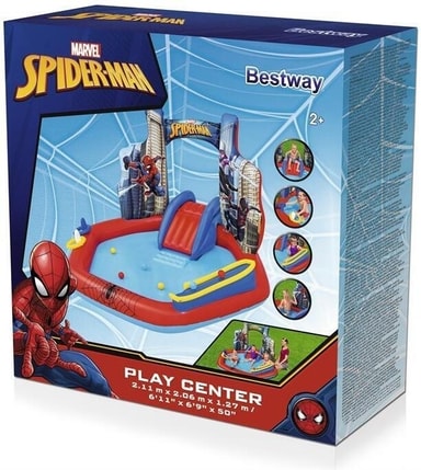 Bestway Spider-Man-bassenget er fullt av action! 2.bassenget måler 11 m x 2,06 m x 1,27 m og har en morsom sklie som er festet til bunnen av bassenget for sikkerhets skyld. Inkluderer også et superhelt-ringkastspill og en oppblåsbar ballrampe.