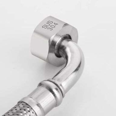 The 4-point elbow hose with 304 cap is made of 304 stainless steel, corrosion and high temperature resistant, 90° angle design for easy installation, suitable for water heaters and toilets.Les mer om produktet