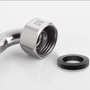90° vinkeldesign: Den 90° vinklede designen gir en mer praktisk installasjon, spesielt i trange rom eller vanskelige vinkler. Den eliminerer behovet for overdreven bøying eller vridning av slangen, reduserer risikoen for skade og sikrer en sikker og lekkasjefri tilkobling. Dette gjør installasjonsprosessen enklere og mer effektiv, og sparer tid og krefter.