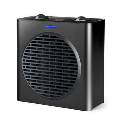 2 varmeinnstillinger 750W-1500W og justerbar termostat. PTC-system for en raskere og mer jevn oppvarming. Viftemodus for å sirkulere luft og friske opp rommet. Automatisk avslåing av sikkerhetsfunksjon ved overoppheting. Egnet for oppvarming av rom inntil 15m2. Veltesikkerhetsbryter slår av varmeren når den faller. Innebygd håndtak sikrer enkel portabilitet