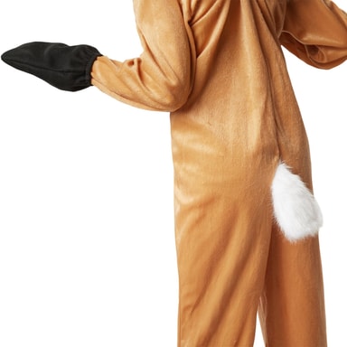 Unisexkostymet Lekent rådyr er i én del og består av en kjeledress, en hette, hansker og sko. Kostymet er fremstilt av okerfarget plysjstoff. På mage- og brystområdet er det en hvit kunstpels.Les mer om produktet