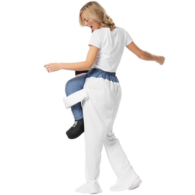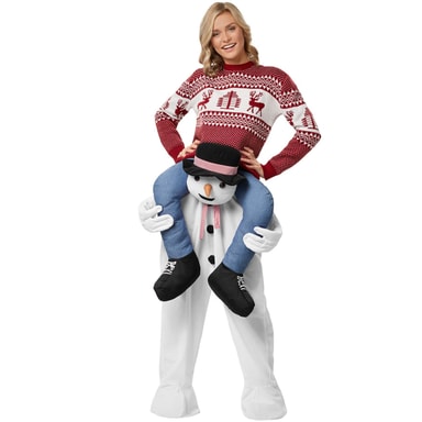 Med det kule ri-på-ryggen-kostymet i snømannform skaper du en iskald overraskelse. Antrekket er formet som en snømann og er enkelt å smette på seg. Bukse og sko er påsydd. De uekte bena og skoene er stoppet og virker dermed mer ekte. Også det vakkert formede hodet til snømannen er stoppet. Gjennom de påsydde oppbrettene på foten forsvinner ens egne ben sammen med skoene under kostymet. Den elastiske linningen med trekksnor garanterer at antrekket sitter perfekt og komfortabelt, materiale: 100 % polyester.