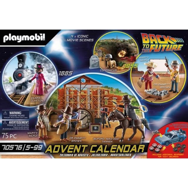 De 24 små lukene skjuler Playmobil®-figurer og tilbehør som holder deg underholdt i Back To The Future-universet. Gjenskap kultscener fra Tilbake til fremtiden med denne adventskalenderen!