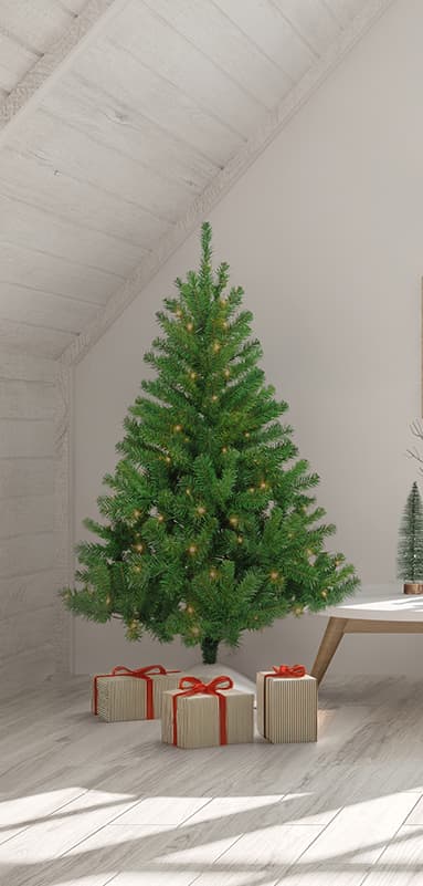 Nord Pine juletre EK23425008 er 140 cm høyt og har 100 integrerte, varmhvite LED-lys. Den kompakte størrelsen passer til mindre rom, og det 3-delte designet sikrer rask og problemfri montering.Les mer om produktet
