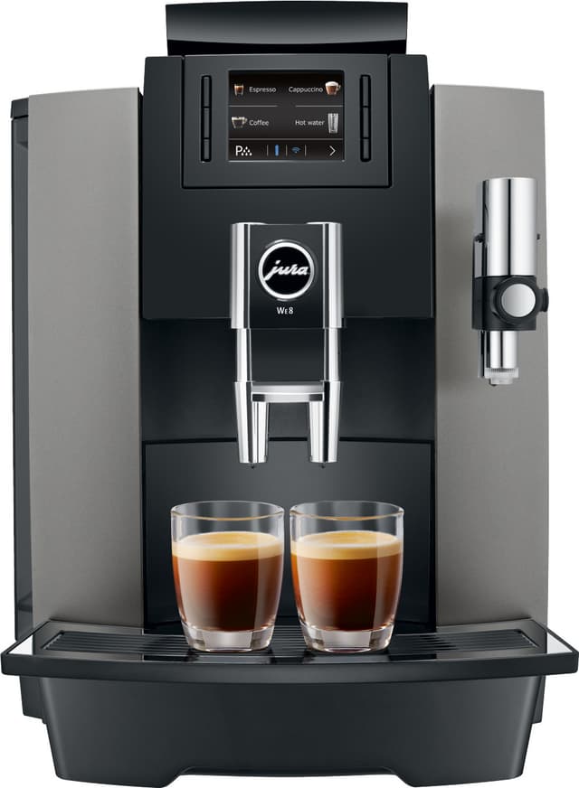 JURA WE8 kaffemaskin er her for å sørge for at en perfekt kopp med kaffe eller te alltid er klar til deg. Drikken din klargjøres med kun et knappetrykk takket være automatisk bruk og en integrert kvern. Smaken sikres ved hjelp av Pulse Extraction Process, mens maskinen er lett å holde ren takket være diverse renseprogrammer.