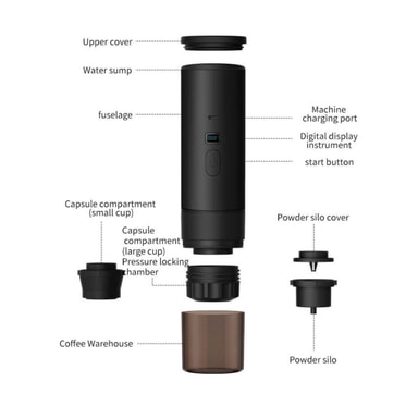 Batteridrevet bekvemmelighet: Drevet av et oppladbart batteri, tilbyr denne bærbare kapselkaffemaskinen trådløs drift for optimal bekvemmelighet. En full lading gir mulighet for flere bryggesykler, noe som gjør den ideell for reiser og utendørsaktiviteter. Maskinen er kompatibel med USB-lading, slik at du kan lade den fra forskjellige strømkilder. Den kompakte designen og lette konstruksjonen gjør den enkel å bære i en veske eller ryggsekk. Den batteridrevne driften eliminerer behovet for stikkontakter, og gir frihet og fleksibilitet i bryggesteder. Kompatibel med standard kapsler, det er en perfekt løsning for kaffeelskere på farten.