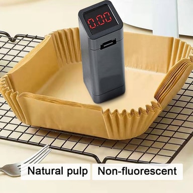 Beskytter frityrkokeren: Disse fettbestandige papirformene har en forhøyet kant som også beskytter siden av frityrkokeren. Det beskyttende papiret holder Air Fryer ren og frisk og reduserer behovet for rengjøring etter bruk.