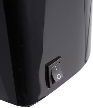 Dette kompakte apparatet er laget av ABS-plast og aluminium og har et elegant, sort design som enkelt passer inn på kjøkkenet.
