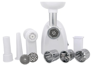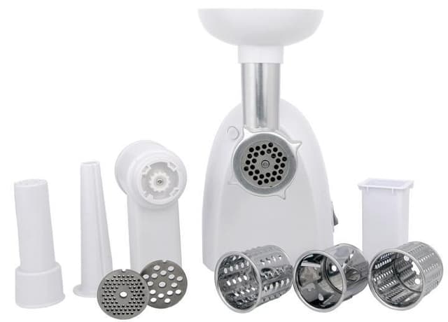 Høy kvalitet er nøkkelenVi husker alle de tunge og slitesterke maskinene som fremdeles finnes på bestemors kjøkken eller blant skattene på loftet. Kvaliteten på kjøkkenutstyret er svært viktig for at vi skal kunne anbefale produktet vårt med god samvittighet! Den maksimale effekten på 1500 W er nok til å male kjøtt eller andre produkter uten problemer og med bare én knapp. Hele enheten er laget av holdbare materialer av høy kvalitet og er enkel å sette sammen og rengjøre. Alt du trenger å gjøre er å velge trommel eller kjøkkenutstyr, sette maskinen på det valgte stedet og bruke den! Brukervennligheten forenkles også av to gir: forover og bakover, noe som eliminerer behovet for å skru av maskinen hver gang noe setter seg fast under sliping. Settet inneholder en mater, et brett og mye tilbehør som gjør det lettere å bearbeide ikke bare kjøtt, men også grønnsaker og frukt.