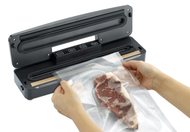 Ved hjelp av denne vakuummaskinen fra Melissa med automatisk vakuum- og forseglingsfunksjon kan du redusere matsvinn og holde maten fersk lenger. Det er enkelt å bruke den til å marinere kjøtt og andre ingredienser for å lage smakfulle og saftige måltider.