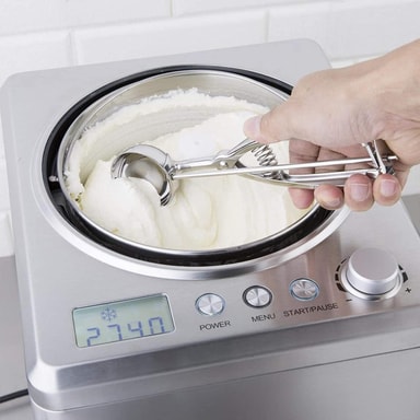 Med isskjeen kan du plassere fine jevnstore glasskuler, men du kan også bruke den til annen mat som frukt, kjøttboller eller deig.
