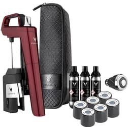 Coravin Timeless Six+ vinsystem lar vinelskere oppbevare de vinflaskene som enda ikke er drukket opp på en sofistikert måte. Systemet kommer med tre spesielle argon-patroner, vinlufter-tilbehør og seks skrukorker.Les mer om produktet