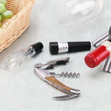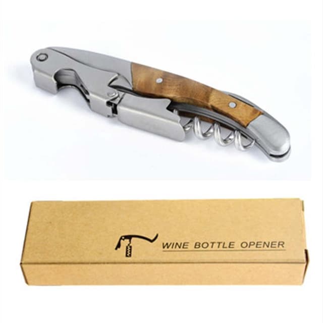 Effortless Cork Removal: Denne rustfrie stål vinkelneren har en presisjonskonstruert snekk som glir uanstrengt gjennom enhver kork, og sikrer en jevn og ren utvinning hver gang. Det doble hengslede støttepunktet gir ekstra vektstang, noe som gjør selv de mest gjenstridige korkene til en lek å fjerne. Perfekt for både nybegynnere og erfarne sommelierer, garanterer denne vinkelen en sømløs vinopplevelse. Den ergonomiske designen minimerer belastningen og maksimerer effektiviteten, slik at du kan nyte din favorittflaske vin uten problemer. Den integrerte foliekutteren sikrer en ren og profesjonell presentasjon.