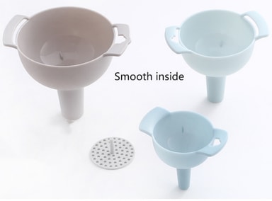 Glatte innvendige vegger: Interiøret i trakten har en elegant og glatt design, noe som reduserer motstanden under helling betydelig. Nyt den sømløse flyten av væsker mens de enkelt glir gjennom trakten, noe som gjør matlagingsprosessen din ikke bare effektiv, men også hyggelig.