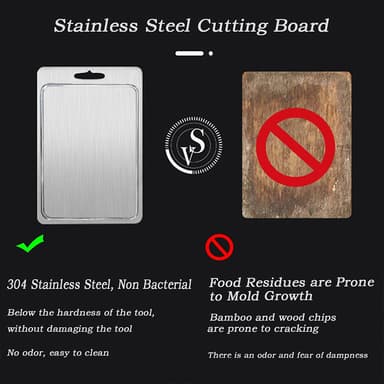 Oppgrader kjøkkenet ditt med dette dobbeltsidige skjærefjølet i rustfritt stål. Det er laget av førsteklasses rustfritt stål 304 av næringsmiddelkvalitet, noe som sikrer en hygienisk og antibakteriell overflate for matlaging.Les mer om produktet