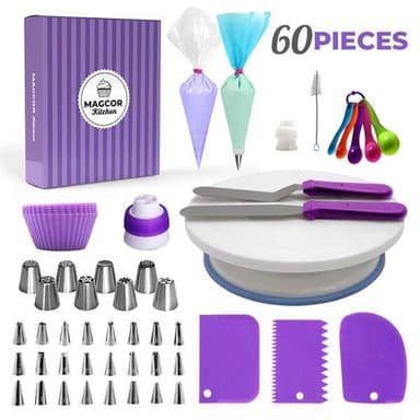 Kakesett med praktisk kakespinner og 60 deler til baking