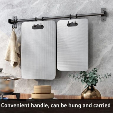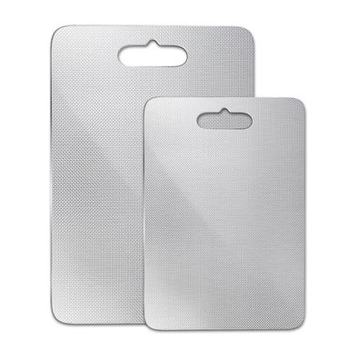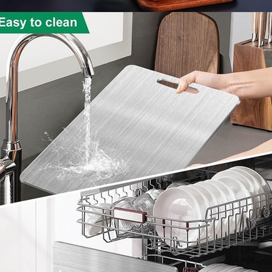 Antibakterielt 304 stål: Laget av premium 304 rustfritt stål, tilbyr dette skjærebrettet iboende antibakterielle egenskaper, noe som gjør det til et tryggere og mer hygienisk alternativ til tradisjonelle skjærebrett av tre eller plast. Den ikke-porøse overflaten forhindrer absorpsjon av væsker og matpartikler, og hemmer veksten av bakterier og mugg. Denne funksjonen er spesielt viktig for tilberedning av rått kjøtt og fjærfe, og reduserer risikoen for krysskontaminering og matbårne sykdommer. Lett å rengjøre med såpe og vann, dette skjærebrettet sikrer et rent og sunt matlagingsmiljø for deg og din familie.