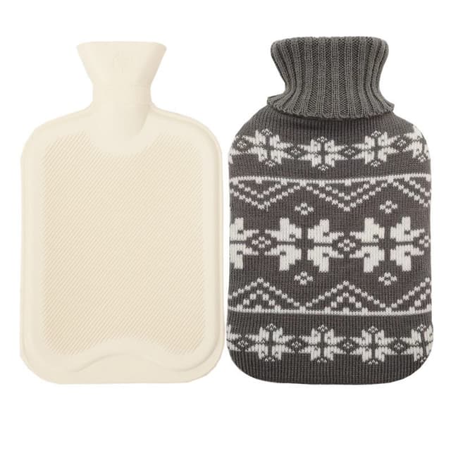Varmtvannsflaske i gummi med strikket deksel (1000 ML) Grå