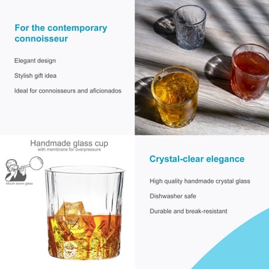 Intirilife whiskyglass laget av krystallglass med 200ml fyllingskapasitet. Opplev uforglemmelige øyeblikk med din favorittwhisky og vårt elegante krystallglass. Krystallglasset med et luksuriøst og tidløst design fullfører din perfekte kveld og du kan nyte din favoritt whisky eller drink etter eget valg. Glasset tåler oppvaskmaskin og slitesterkt. Det elegante glasset er også den perfekte gaven til spesielle feiringer. Du vil motta en pakke med 6 stk.