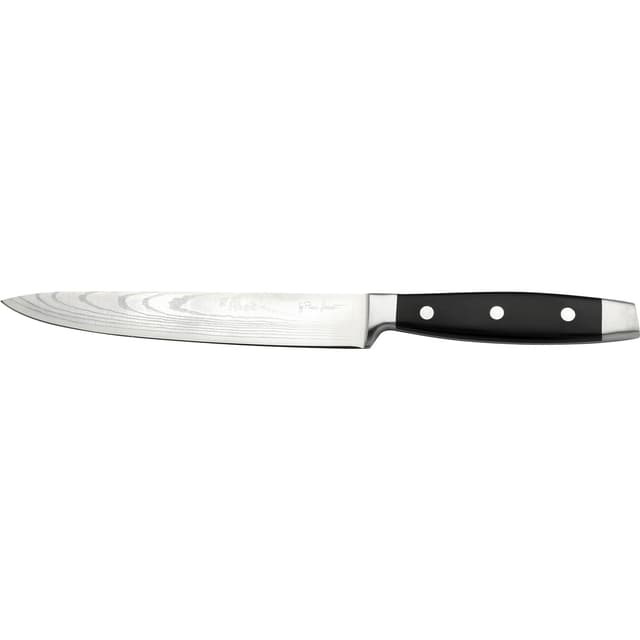 Allroundkniv 24,5 cm DAMAS.Bladlengde: 13 cmTotal lengde: 24,5 cmMateriale: tre / rustfritt stålFORSIKTIG: Feil håndtering gjør enhver kniv farlig.Les mer om produktet