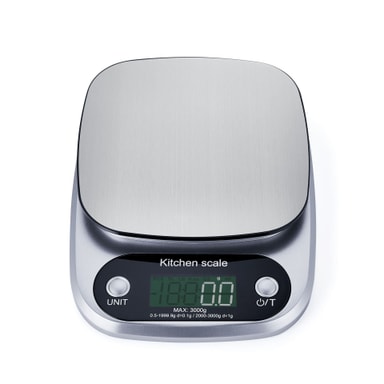 Nøyaktig 3 kg / 0,1 g digital kjøkkenvekt i sølv. Perfekt for nøyaktig måling av ingredienser. Med LCD-skjerm, tarafunksjon og enhetskonvertering. Ideell for matlaging og baking.Les mer om produktet
