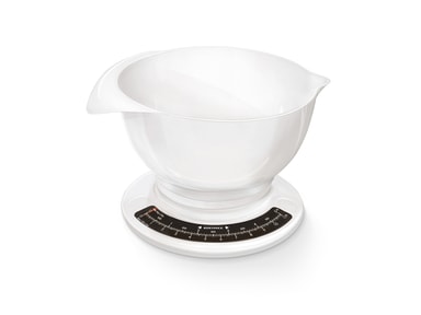 Inkluderer stor skål med håndtak og helletut (2,5 l). Mekanisk Tare funksjon. Enkel å rengjøre. 26,5 x 26,5 x 18 cmLes mer om produktet