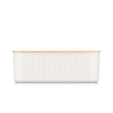 Denne store brødboksen gir også bra plass til oppbevaring på benkeplaten. Laget i fargerik BPA-fri plast. Den har et bamboo lid that doubles up as a cutting board og som serveringsbrett til brødet ditt. Den har også spor som fanger opp brødsmulene.