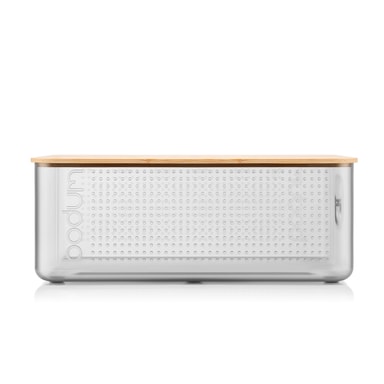 Denne store brødboksen gir også bra plass til oppbevaring på benkeplaten. Laget i fargerik BPA-fri plast. Den har et bamboo lid that doubles up as a cutting board og som serveringsbrett til brødet ditt. Den har også spor som fanger opp brødsmulene.