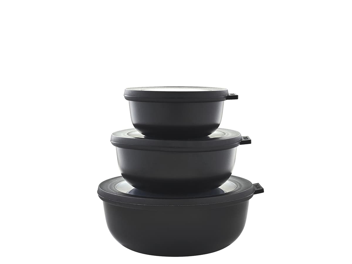 Mepal Cirqula oppbevarings- og serveringsskålsett - romslig, praktisk og dekorativ i kjølige, nordiske fargetoner. Settet består av 350 ml, 750 ml og 1250 ml.Les mer om produktet