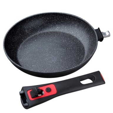Denne stekepannen med avtakbart håndtak er laget av slitesterk aluminium av høy kvalitet, har en magnetisert bunn for rask varmeoverføring og er nøye belagt med et non-stick-belegg. Denne pannen gir enestående non-stick-ytelse uten risiko for eksponering for giftige kjemikalier, ettersom belegget er helt giftfritt.