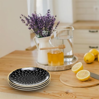Tallerkenene er runde og ganske enkle for å utnytte overflaten optimalt. Samtidig er de også veldig stilige og passer til enhver borddekorasjon og ethvert interiør.
