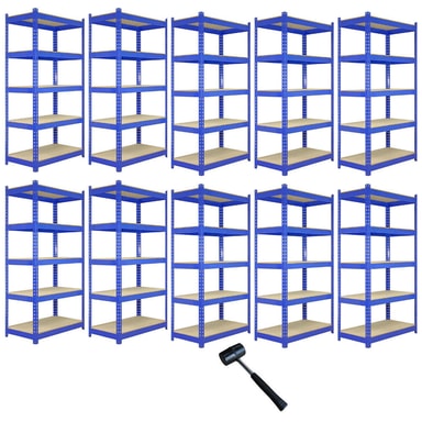 Takket være det intelligente skrueløse monteringssystemet er hyllene enkle å sette sammen og klare til bruk på få minutter ved kun å kreve bruk av den medfølgende semsket skinnklubben. Bare skyv komponentene på plass og klikk sammen ved hjelp av låsemekanismen, og skaper en solid lagringsenhet perfekt for garasjer, varehus, vaskerom, skur og drivhus. Hyllene er også høydejusterbare, noe som gir deg total fleksibilitet for å maksimere lagringsmulighetene dine. Hele enheten kan også deles i to og skape to mindre arbeidsbenker eller hyller.