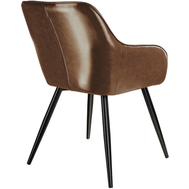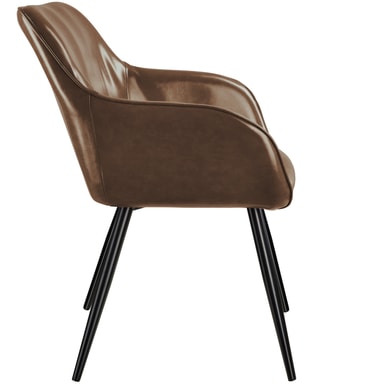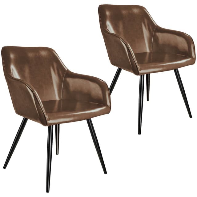 Om du er fan av moderne og smakfulle møbler er den smakfulle Marylin-stolen fra tectake et absolutt must. Takket være sine buede linjer skjærer møblet en fin figur både som solist eller som en del av en gruppe. Den komfortable polstringen under dekselet i kunstskinn sikrer komfortable sitteplasser mens du prater og slapper av. Fire runde rørformede ben danner den spenstige rammen og avrunder fordelene med denne polstrede stolen på en dyktig måte. Stolen passer perfekt inn i hjemmet ditt i stuen, på kjøkkenet eller på kontoret.