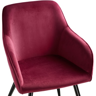 Denne elegante polstrede stilige aksentstolen fra tectake har et fløyelstrekk for å legge til glamour til hjemmet ditt. Denne spisestolens rike farge er et ekte blikkfang, og kan kombineres optimalt med ulike interiørstiler. Stolen har en robust stålramme som garanterer utmerket stabilitet og spenst, mens plasthettene på de fire føttene reduserer støy og forhindrer riper på rommets gulv. Ved siden av sitt attraktive utseende og eksepsjonelle materialegenskaper, lever dette smakfulle møblet med sine komfortable armlener og polstring også opp til forventningene når det gjelder komfort. Perfekt for både å slappe av i stuen eller å bruke ved spisebordet. Hvis du trenger en ny moderne stol som vil utmerke seg i både komfort og stil, trenger du ikke lete lenger enn til denne Marilyn-stolen med armlener fra tectake.